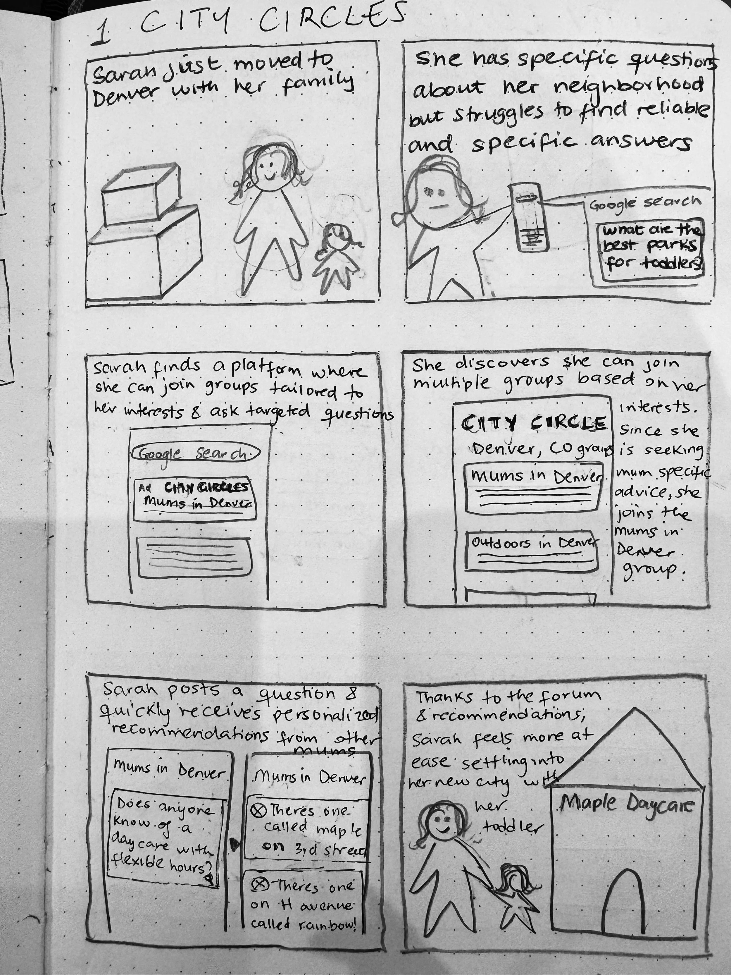 I used storyboarding to test different approaches, and City Circles proved to be the strongest way to foster belonging.